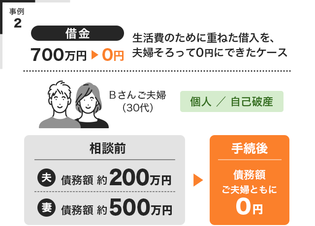 ・借金ゼロまたは大幅減額を目指し、最後まで二人三脚でしっかりサポート